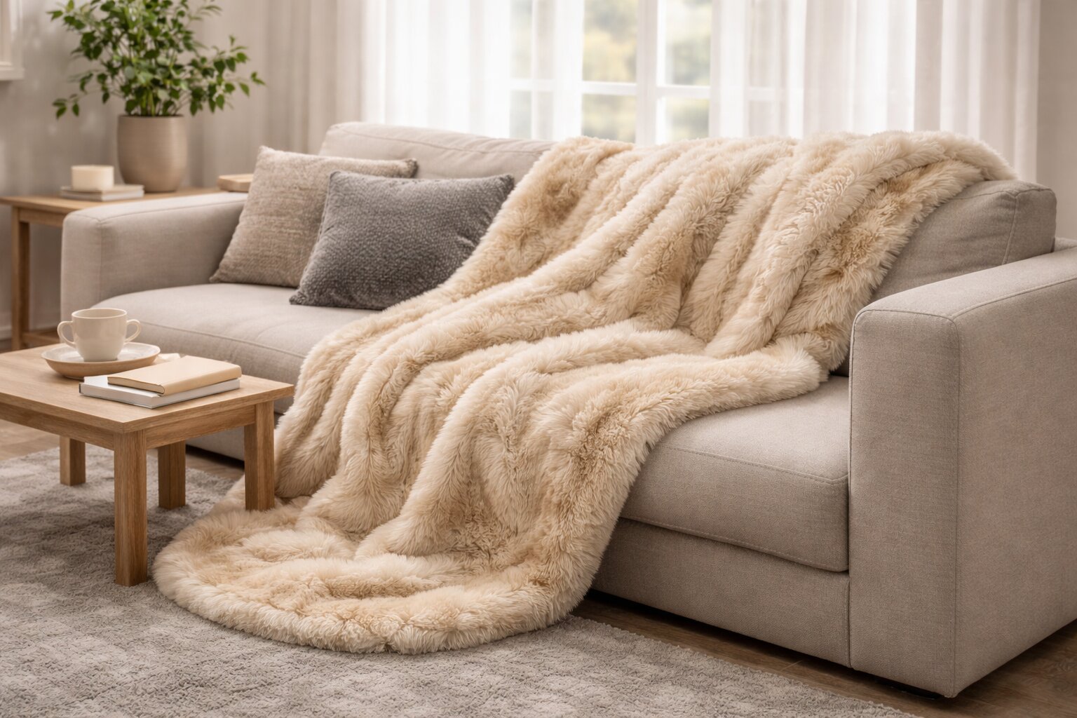 Пледы, покрывала, декоративные подушки, чехлы для стульев, коврики, накидки на кресла - искусственный мех отлично работает в интерьере. Он добавляет комнате ощущение тепла и делает обстановку более уютной.