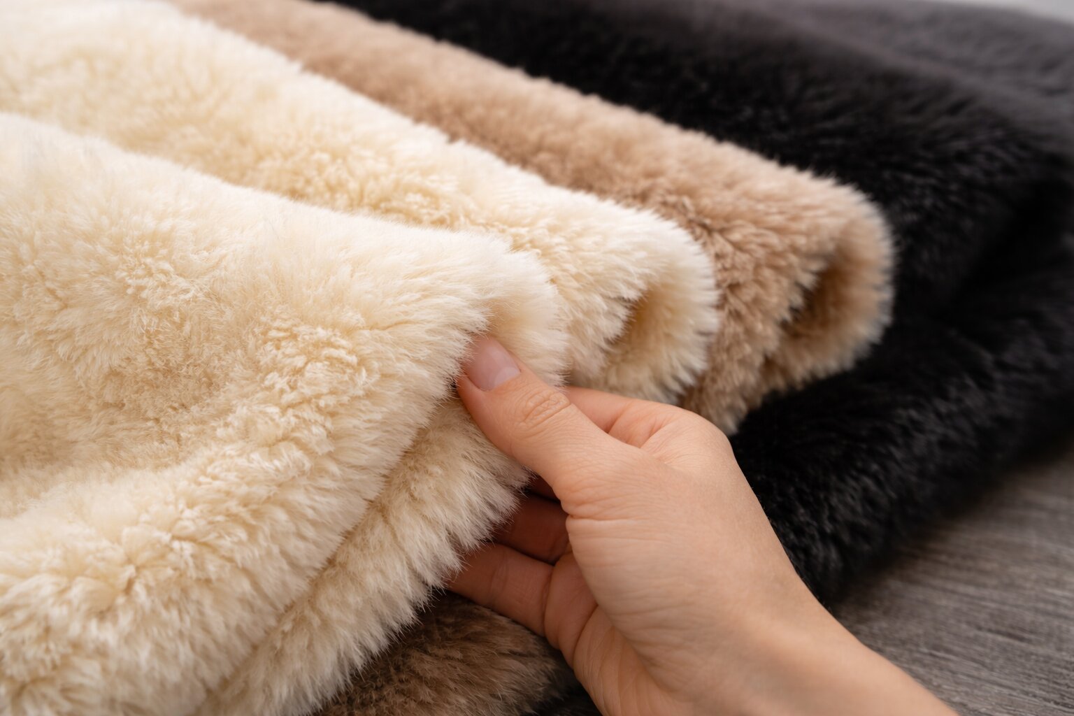 - Мягкость и пластичность. Материал должен красиво ложиться, если речь идет об одежде или пледе. Слишком жесткий мех может смотреться грубо и мешать в пошиве.